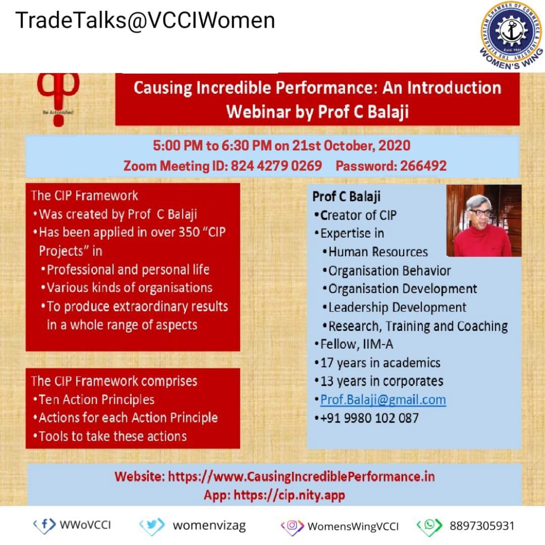 ‘CAUSING INCREDIBLE PERFORMANCE’, An introduction webinar by Prof. C Balaji devoted his life to enable people to cause incredible performance with 30 years of work experience. He is a Fellow member of IIM, Ahmedabad. Worked as a faculty member of IRMA and later as a director of the Academy of HRD and in various other corporate sectors. He has hands on experience in Human Resource Management, Behavioural Science, Organization Development, and various Research Methods. He spoke about his training program causing incredible performance in work and nonwork aspects. On reflection, he noticed that he had himself caused incredible performance in some situations. Based on these experiences he created the CIP (Causing Incredible Performance) Framework originally