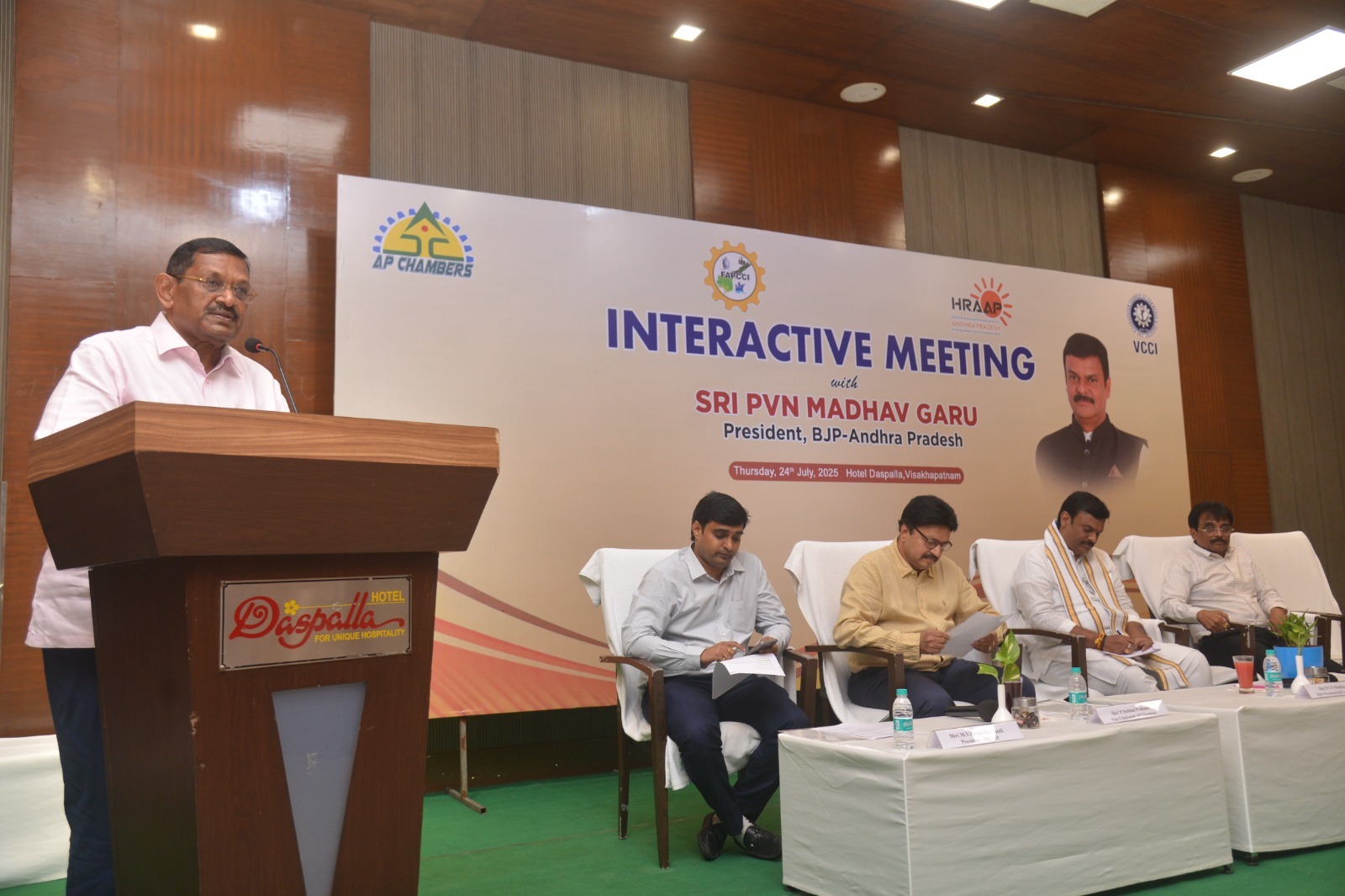 An interactive session was held with Sri PVN Madhav, the newly elected BJP State President of Andhra Pradesh,in the presence of prominent industrialists and representatives from various trade and industry bodies.